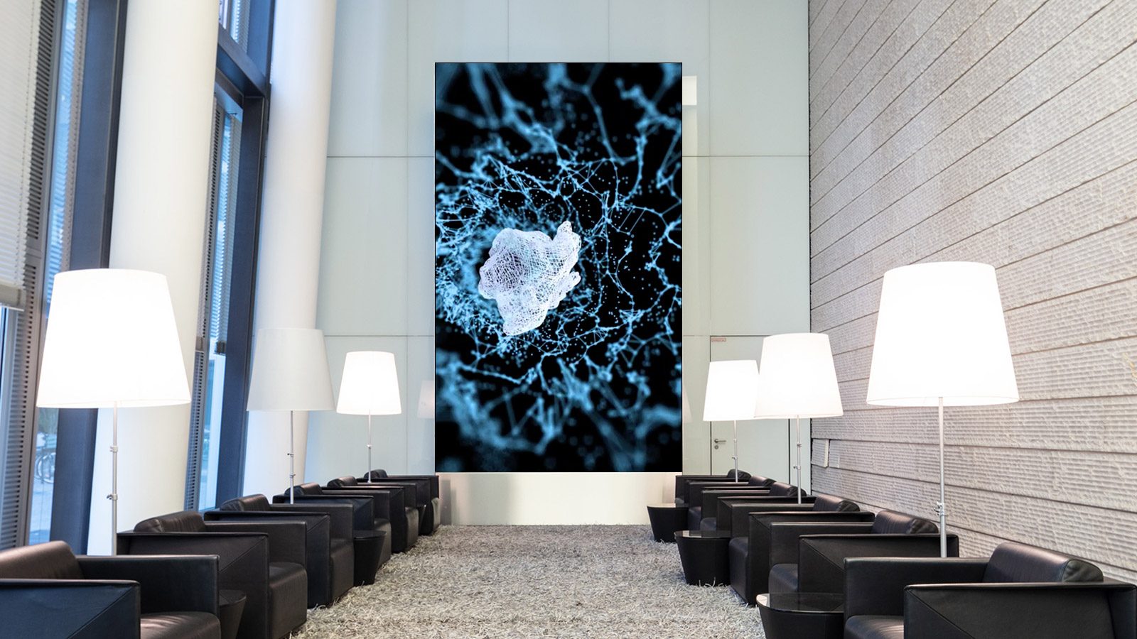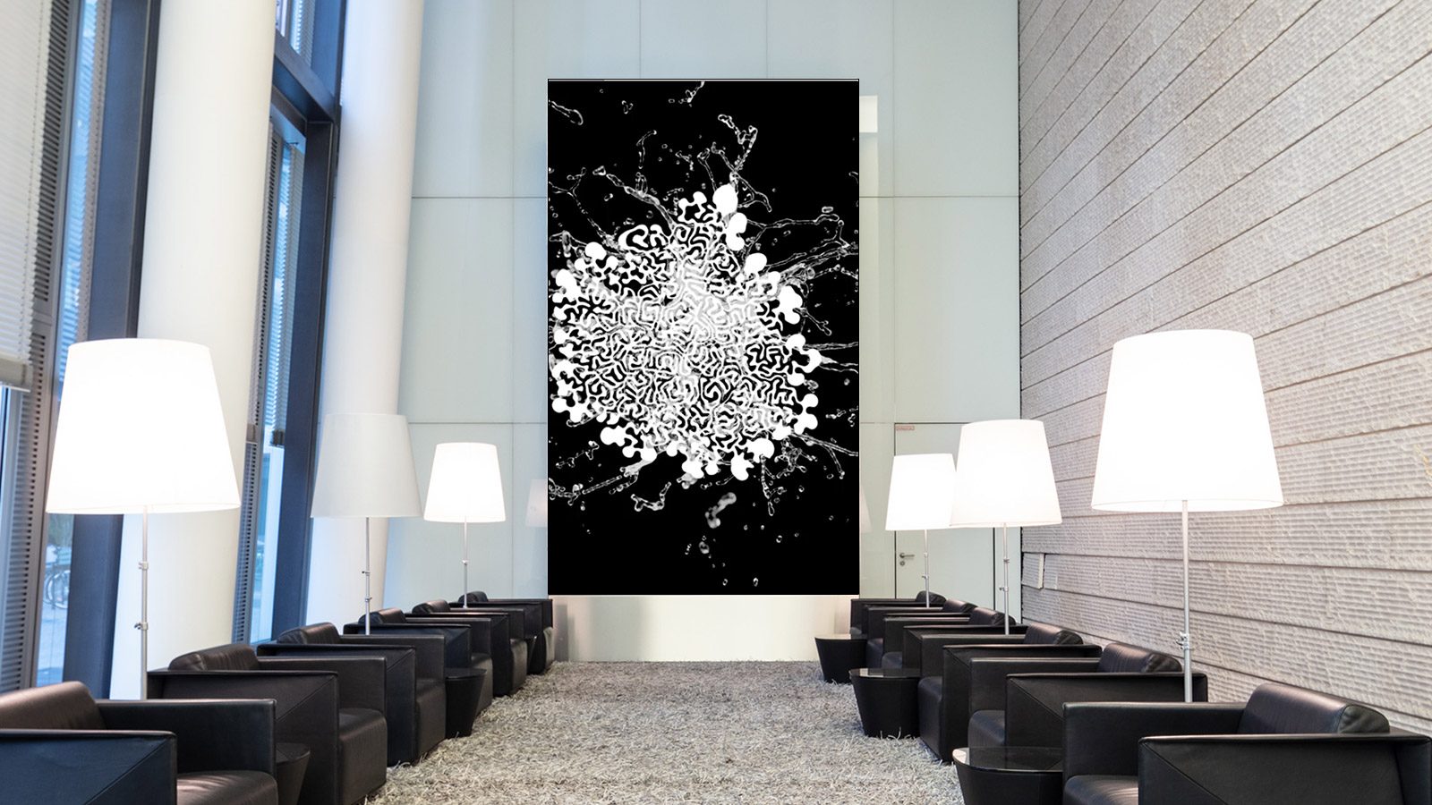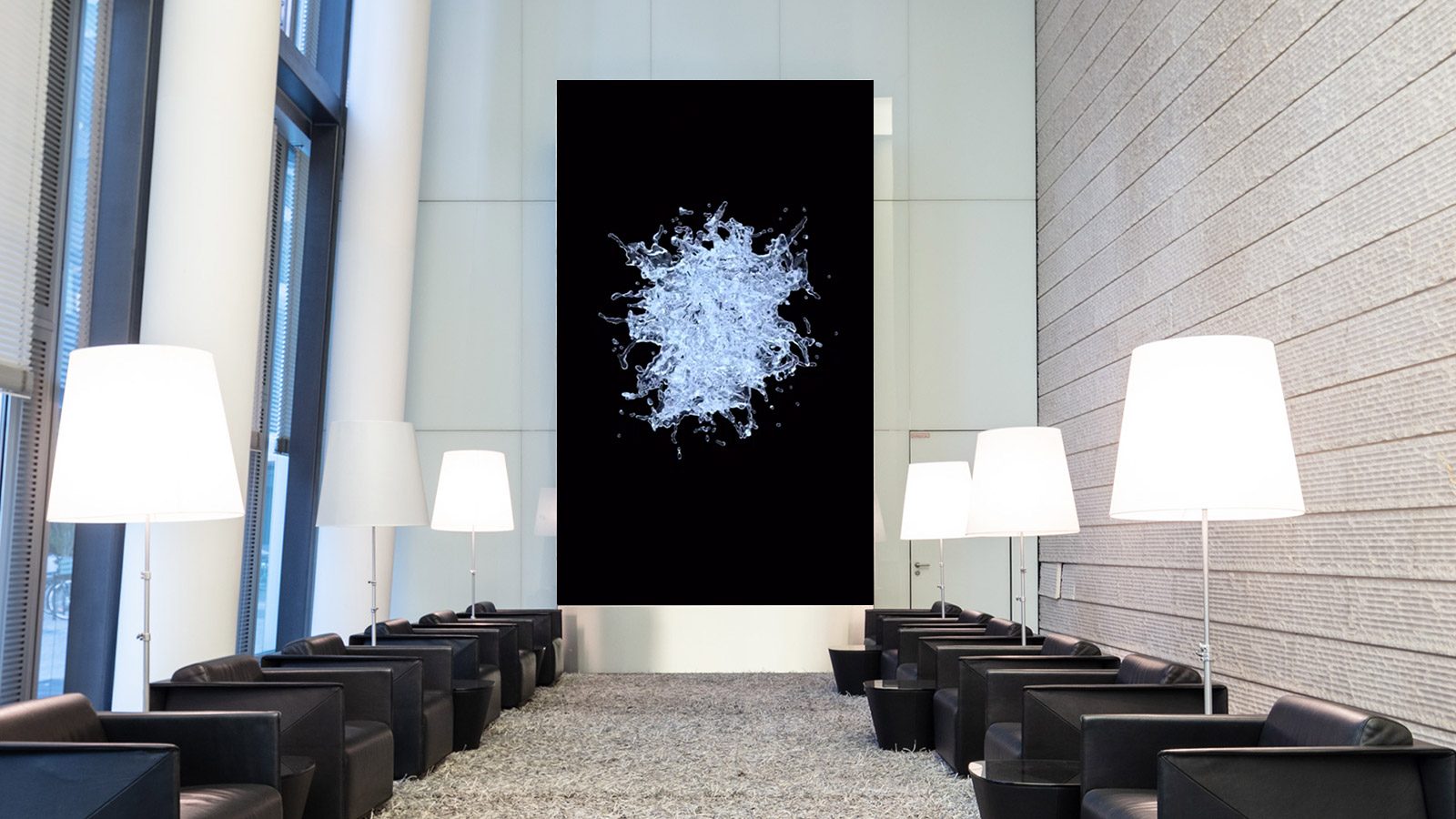 In der Natur ist alles auf subtile Weise miteinander verbunden. Alles ist eine Einheit, ein großes Ganzes. In der Videoinstallation Ne•xus – Zusammenhang, Verbindung, Verkettung, Vernetzung – im NEXTOWER-Foyer wird dies am Element Wasser erlebbar. Veränderung passiert in jeder Millisekunde und in jedem Aggregatzustand. Es wird offensichtlich, dass die Dinge permanent in Verbindung zueinanderstehen. Die 3 x 5 Meter große Leinwand intensiviert das Naturschauspiel, in dem vertraute Schnittstellen zum eigenen Leben Nähe und Einfühlung schaffen.