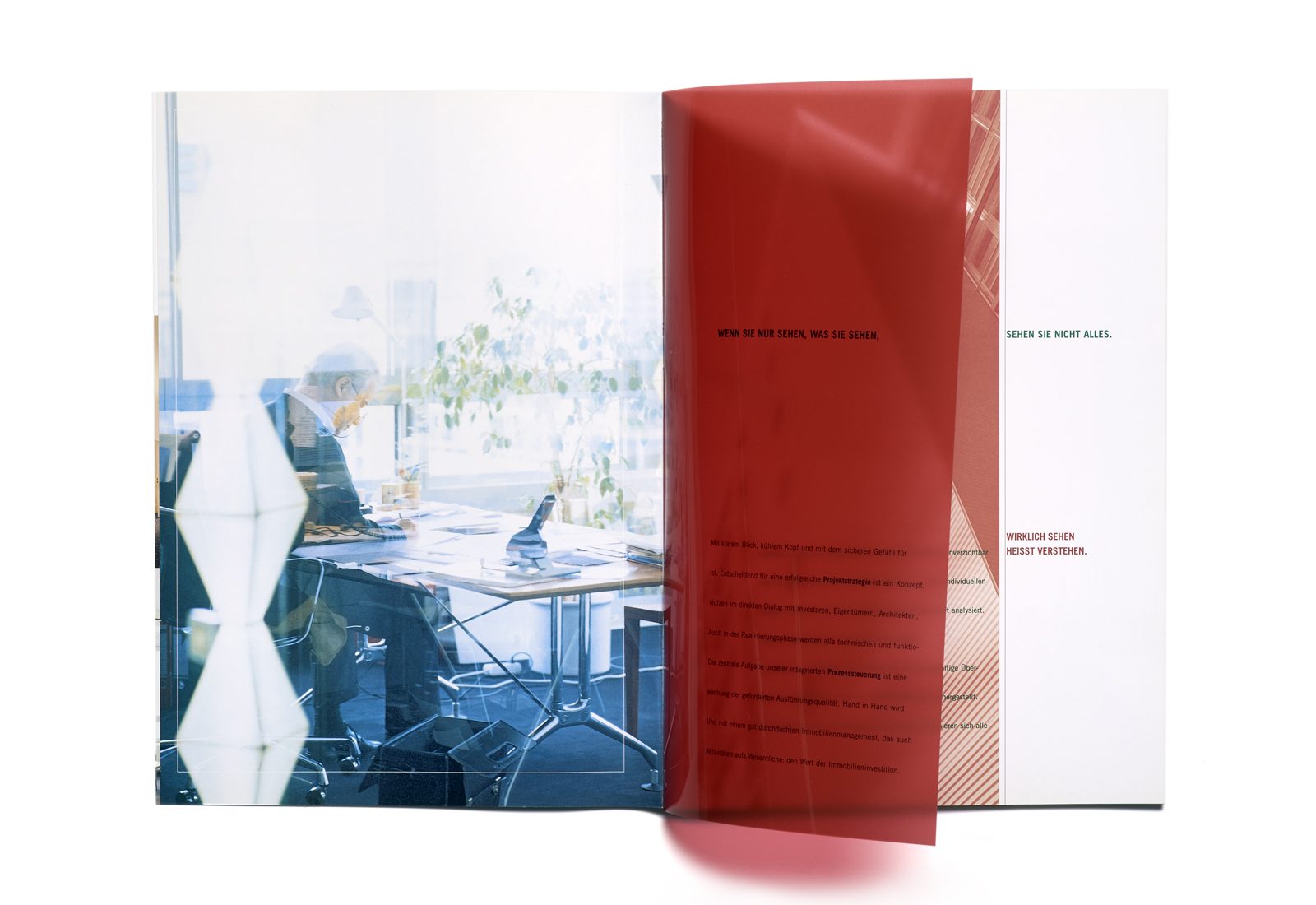 Für die Entwicklung innovativer Ideen ist es wichtig, die Welt mit anderen Augen zu betrachten. Dieser Wechsel von Perspektiven und das Spiel mit unterschiedlichen Wahrnehmungen hat scs schaafhausen bei der Entwicklung der Imagebroschüren für Groß & Partner in den konzeptionellen Mittelpunkt gestellt. Denn gerade für die Projektentwicklung liegt die Herausforderung darin, ganz unterschiedliche Aspekte wie architektonischen Anspruch, wirtschaftliche Effizienz oder die flexiblen Nutzungsmöglichkeiten differenziert zu betrachten und harmonisch zu verbinden.