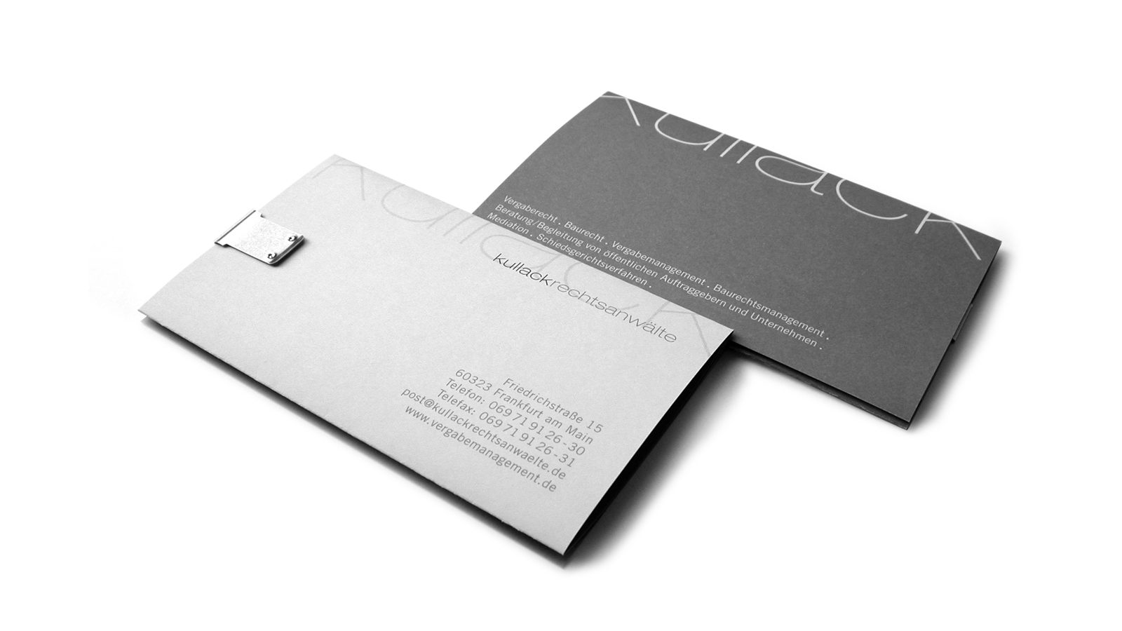 scs schaafhausen gestaltete für die Frankfurter Anwaltskanzlei einen auffallenden wie seriösen Gesamtauftritt. Ob Logo, komplette Geschäftsausstattung, handlicher Imagefolder, der hinsichtlich Format und Gestaltung auf typische Gesprächssituationen mit dem Klienten abgestimmt ist, oder Webauftritt mit Sprechblasen – der kommunikative Auftritt ist einladend und regt auf charmante Weise dazu an, in Dialog zu treten.