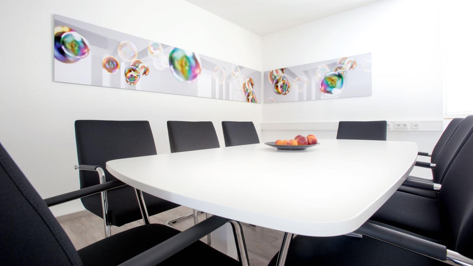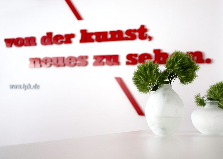 Für die Ausstattung des Konferenzzentrums übernahm scs schaafhausen die Aufgabe des „Art Consultings“: den Räumen ein Gesicht geben, Identität schaffen, Inspiration fördern, Sichtweisen aufzeigen, anregen. Durch großflächig eingesetzte künstlerische Portrait-Fotografie, feine Wandgrafiken und Zitate auf perspektivischen Farbhintergründen werden Ideen gefördert und Gedanken in Bewegung gesetzt.