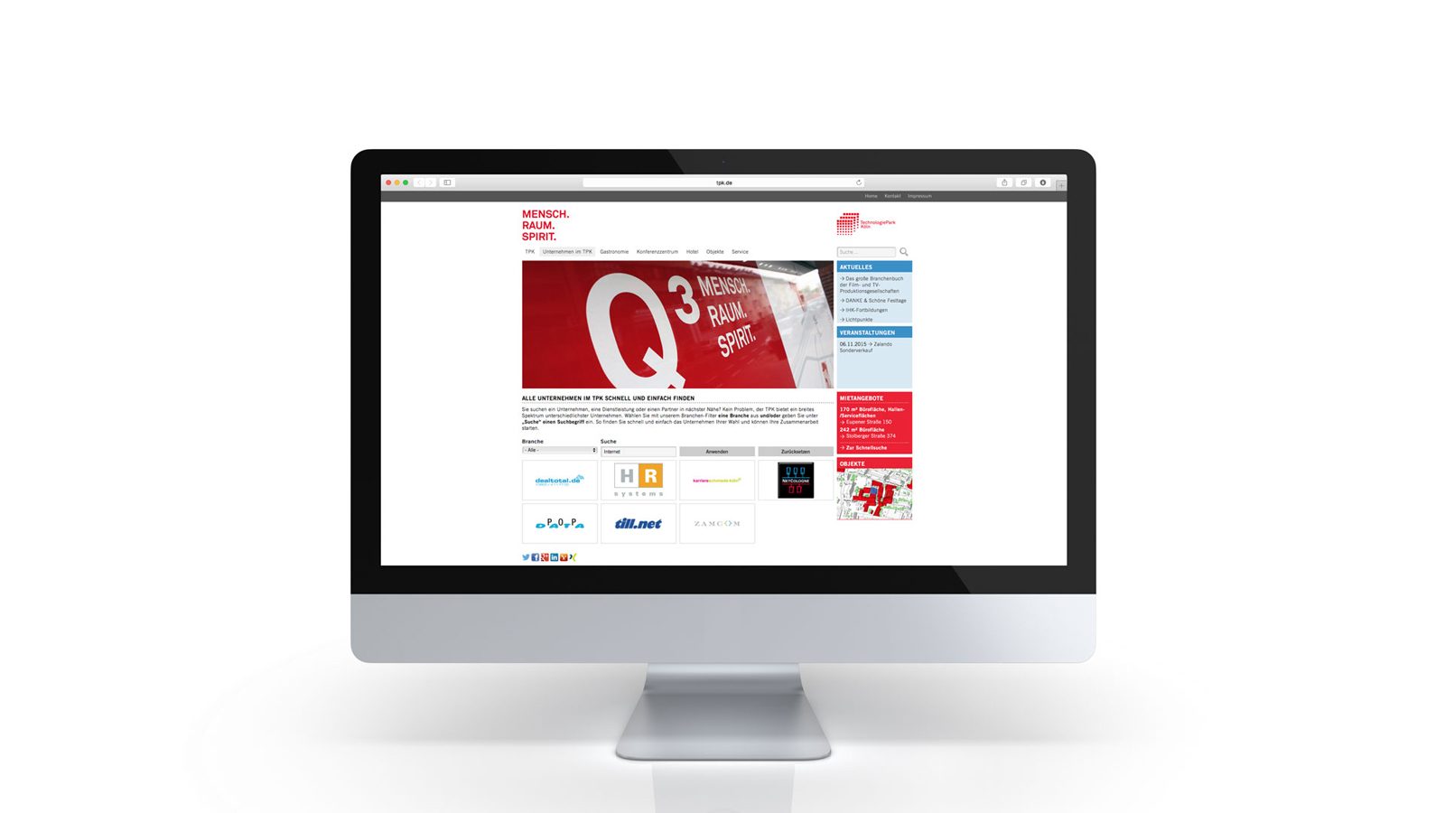 Der Technologie Park Köln (TPK) bietet auf rund 110.000 qm (17 Gebäude) Büro- und Gewerbeflächen in Kölns bester Lage. Für die Entwicklung der Kommunikationsmedien war es scs schaafhausen wichtig, ein medienübergreifendes wie strukturierendes Erscheinungsbild zu etablieren, um dem gesamten Areal wie den einzelnen Gebäuden eine Identität zu verleihen. Unter dem von scs schaafhausen kreierten Leitgedanken „Von der Kunst, Neues zu sehen“ wurde über verschiedene Etablierungsphasen ein Kulturwandel eingeleitet: Mit einer Website (www.tpk.de), die das TPK nach außen darstellt aber auch den Dialog mit den Mietern fördert. Mit individuellen Exposés zu jedem Gebäude, um die Vermarktung zu unterstützen. Mit Events und Gestaltungskonzepten, die das TPK als Ganzes aufwerten und für die Mieter eine effiziente Struktur sowie eine Atmosphäre zum Wohlfühlen schaffen. Die gesamten Aktionen wurden mit einer hohen Vermietungsquote belohnt.